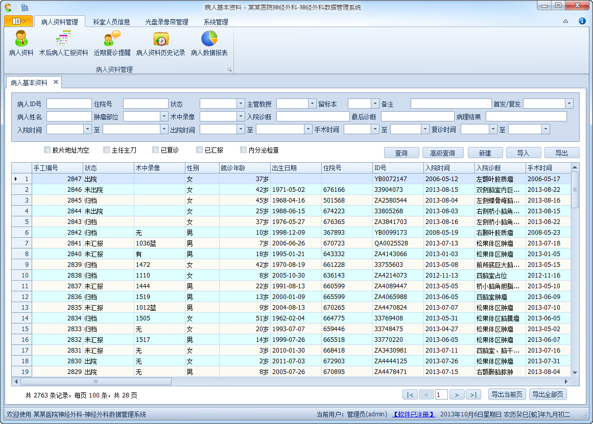 軟件支持對病人基本情況、手術情況、隨訪情況等方面信息的管理,根據不同的科室的數據管理要求進行不同的定制,軟件界面大方美觀, 具有良好的穩定性和友好性,已經成功運行在多家大型醫院科室的管理中,獲得眾多客戶的好評和信賴。